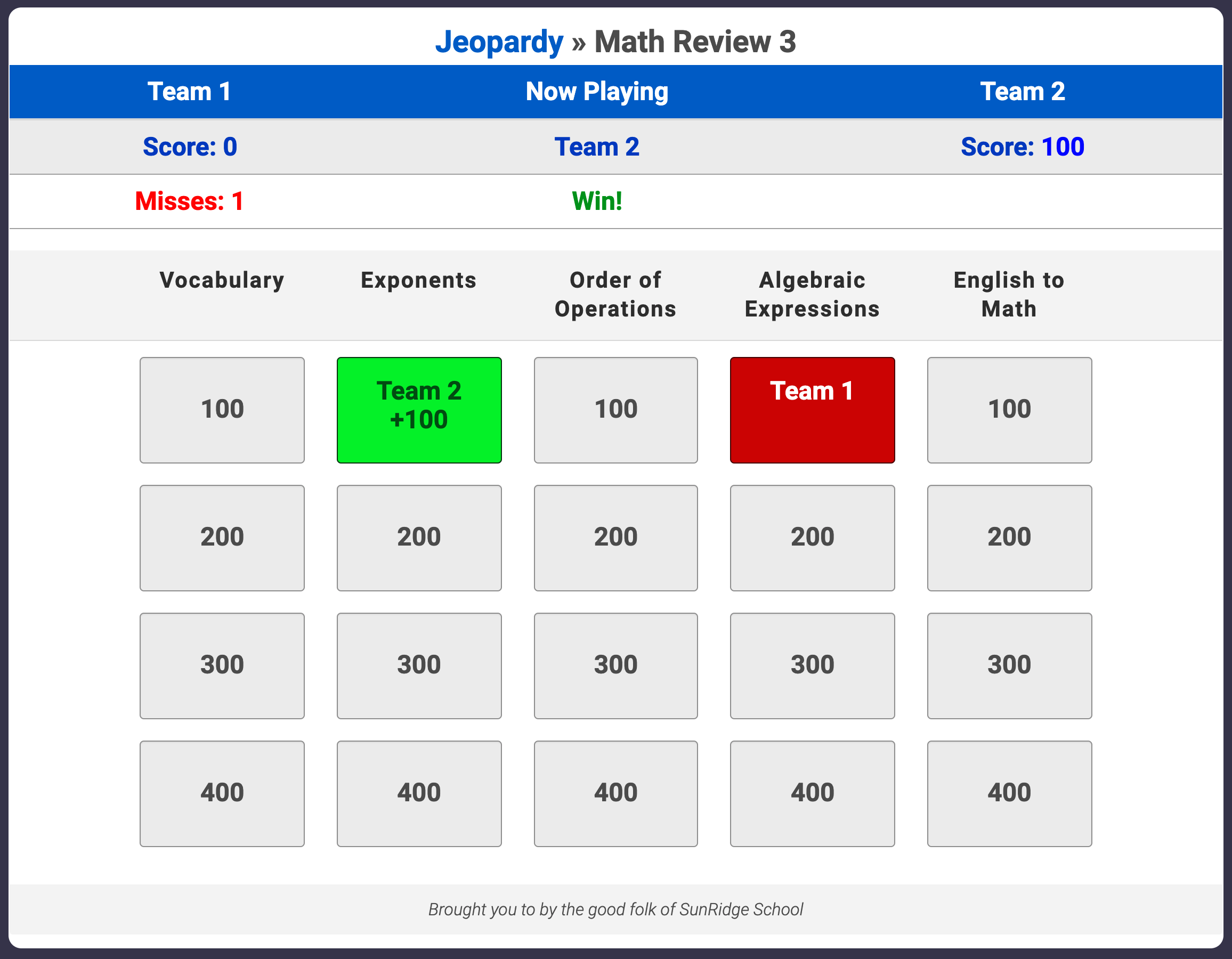 Interactive two-team javascript game based on the original Jeopardy.